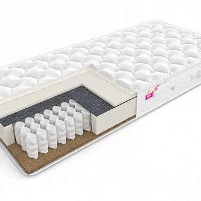 Матрас с независимым пружинным блоком TFK. Поскольку каждая пружина в данном изделии реагирует на давление вне зависимости от другой, создается отличный анатомический эффект. Кроме того, данная модель имеет две стороны с различной жесткостью. Одна содержит в качестве основных наполнителей высокоэластичную пену и термовойлок, а другая – кокосовую койру.