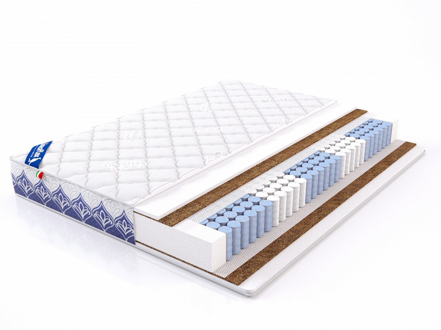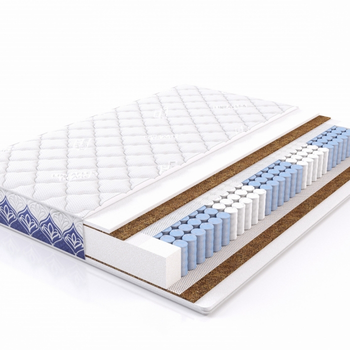 Наполнение: 1 см кокос+2 см пена Ergoflex/блок независимых пружин с 5-ю зонами поддержки/1 см кокос+2 см пена Ergoflex.