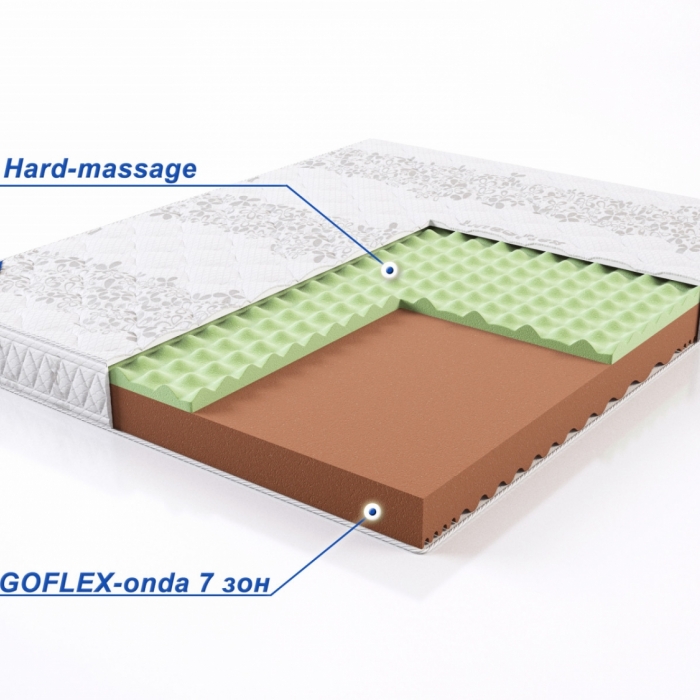 Верхняя часть матраса – слой высотой 5см HARD-massage. Упругая по ощущениям, с массажным эффектом. Обеспечит комфорт людям , предпочитающим упругие, жесткие матрацы.