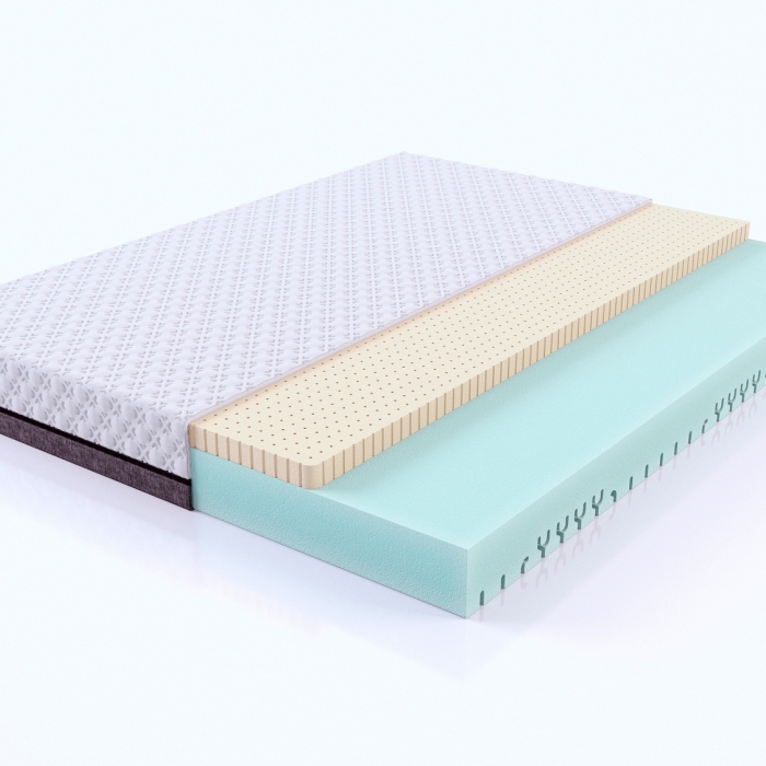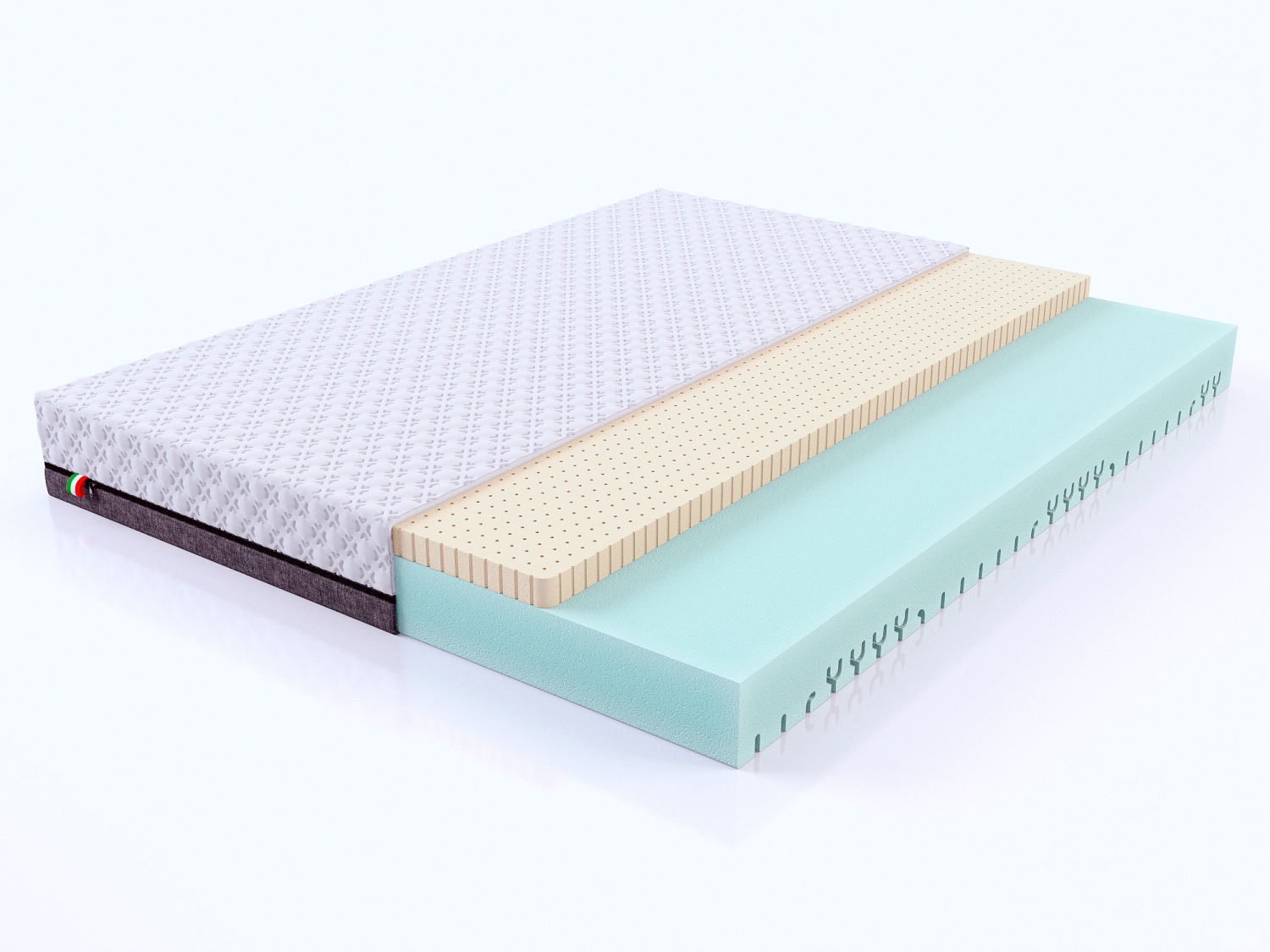 Верхняя часть матраца- слой высотой 5 см из 100% латексной пены. Латексная пена антиаллергенный, ультраэластичный материал с высокой несущей способностью. Этот материал является лидером в использовании материалов при создании матрацев высокого уровня анатомичности и одновременно долговечности.