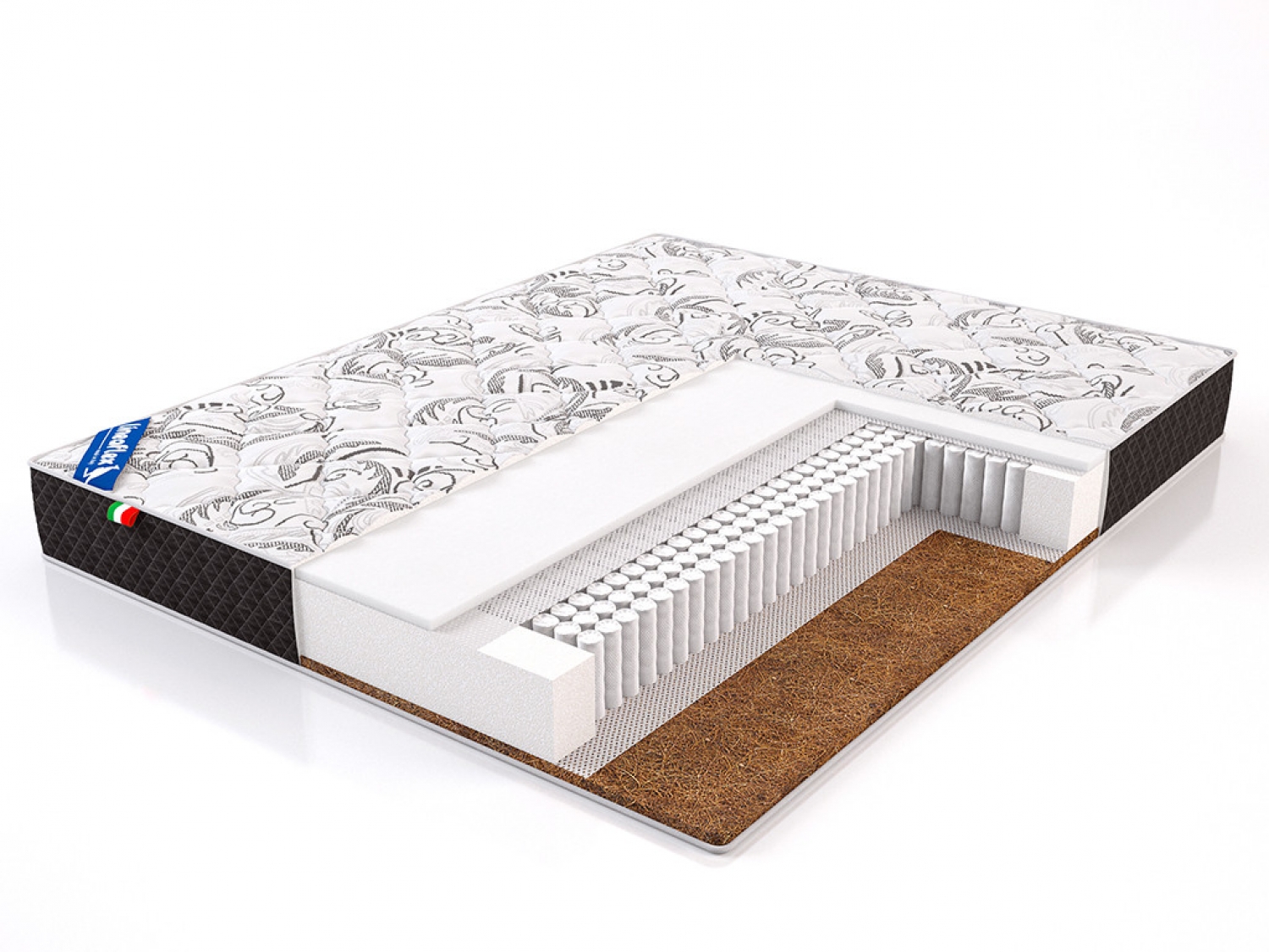 Наполнение: 2 см пена Ergoflex/блок независимых пружин малого диаметра Мультипакет/2 см кокос.