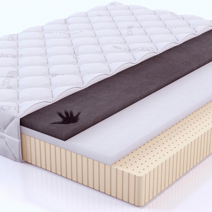 Наполнение: 4 см пена Memory anthracite, цвет черный/ 4 см пена EVATECH/14 см трехзональный латексный блок.