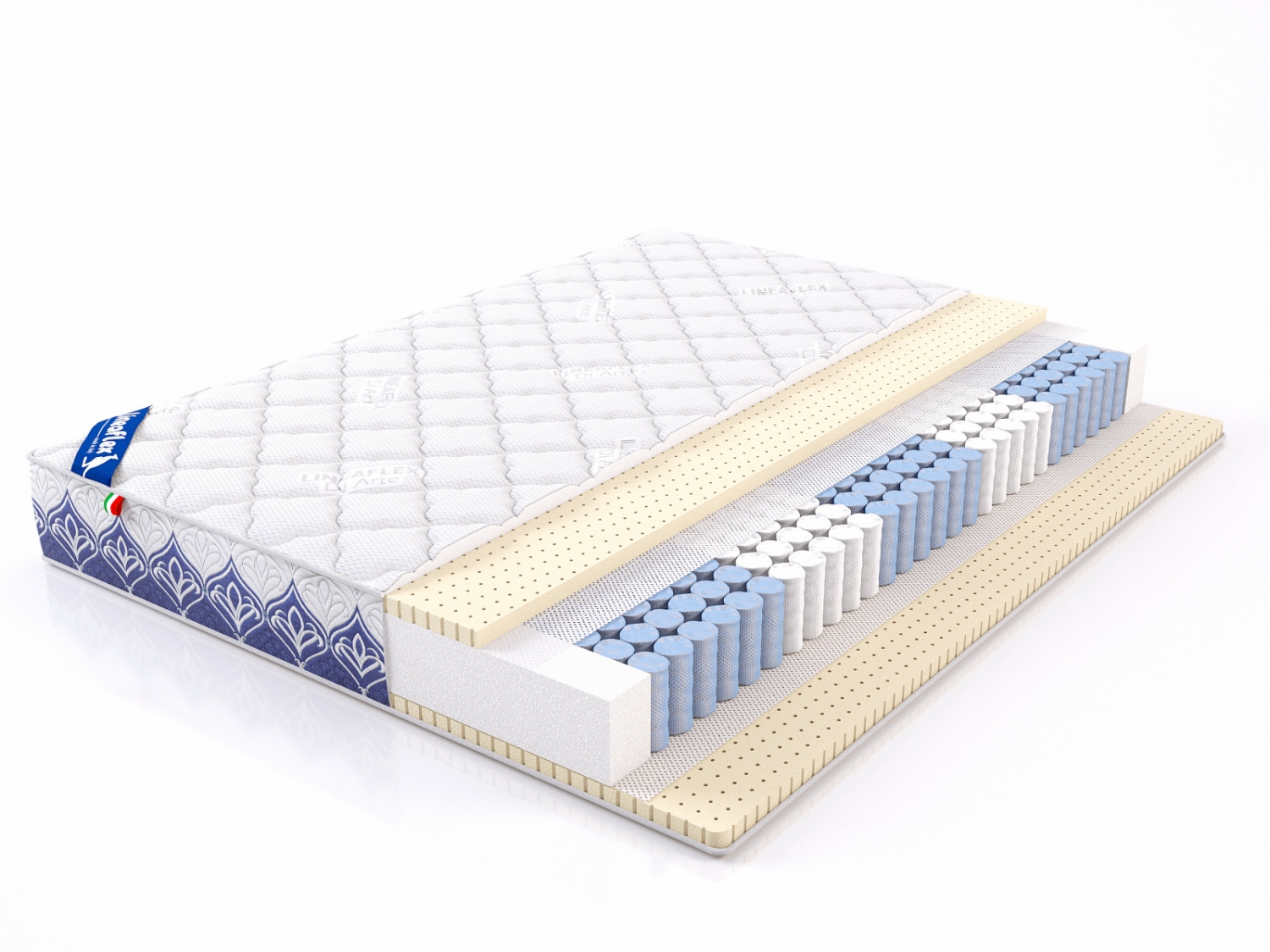 Наполнение: 3 см латекс/блок независимых пружин с 5-ю зонами поддержки/3 см латекс.