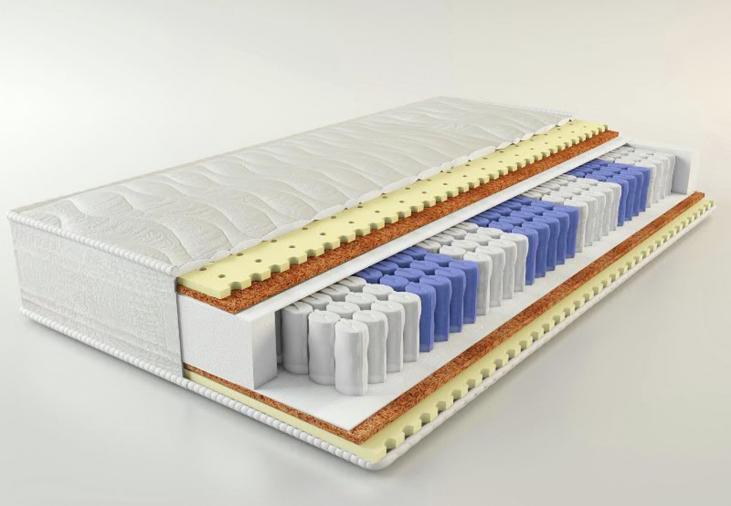 Наполнение: 1 см кокос+3 см латекс/блок независимых пружин с 7-ю зонами поддержки/1 см кокос+3 см латекс.