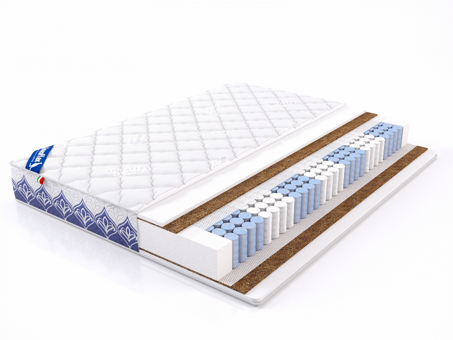 Наполнение: 1 см кокос+2 см пена Ergoflex/ блок независимых пружин с 7-ю зонами поддержки/1 см кокос+2 см пена Ergoflex.