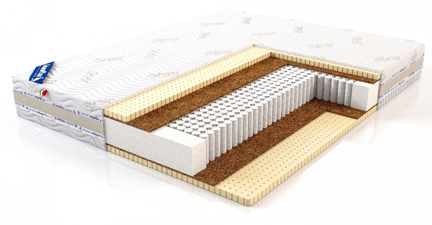 Наполнение: 1см кокос+3 см латекс/блок независимых пружин Мультипакет/1см кокос+3 см латекс.