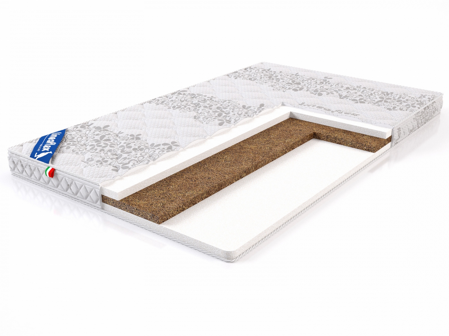 Кокосовая койра - великолепный натуральный материал. Обладает такими важными для здоровья человека свойствами как антиаллергенность, антистатичность, гигроскопичность. Благодаря жесткости кокоса, матрас обладает высокими ортопедическими свойствами. Ergoflex – недеформируемая, эластичная пена, которая позволяет матрасу хорошо адаптироваться под тело ребенка.