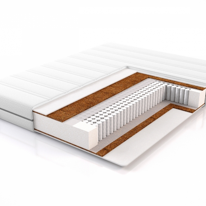 Кокосовое волокно, применяемое при производстве матрасов, представляет собой пропитанные латексом (латексированные) термоскрепленные плиты. Высокое содержание латекса (50%) обеспечивает материалу упругость и устойчивость к нагрузкам. Экологичность, природная эластичность и хорошая воздухопроницаемость плит из кокосового волокна делают поверхность матраса жесткой и упругой.